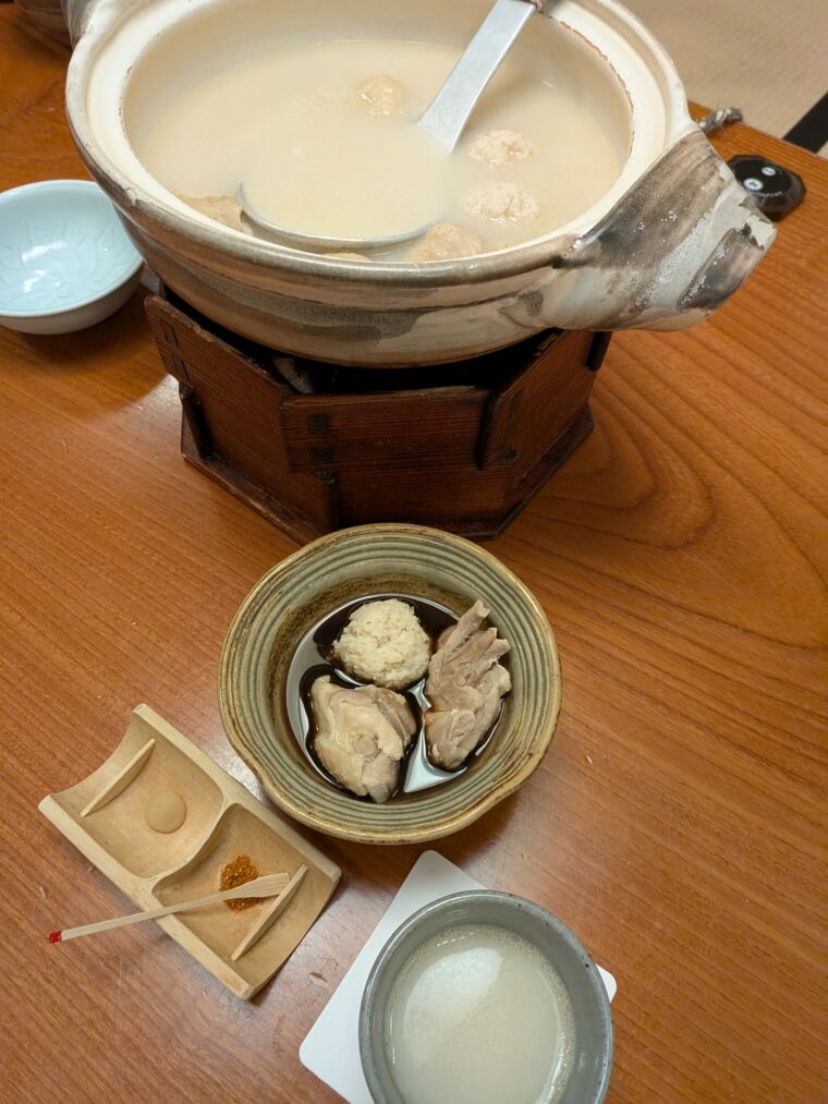 続いて供される白濁スープの水炊きは、濃厚ながらすっきりとした後味で、鶏の旨味が口いっぱいに広がります。
