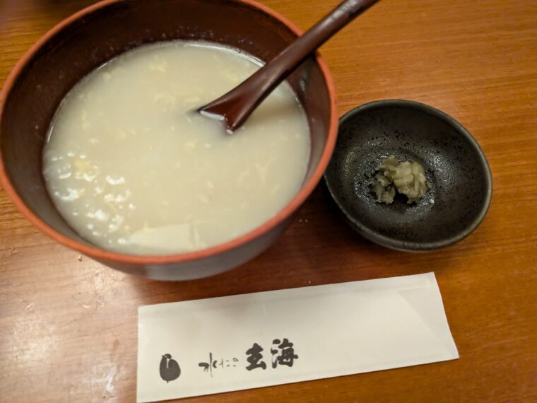 締めはスープをたっぷり含んだ雑炊。奥行きのある深い味わい、老舗ならではの落ち着いた雰囲気、心身ともに満たされました。新宿の真ん中でこんな贅沢を味わえるのは格別です。