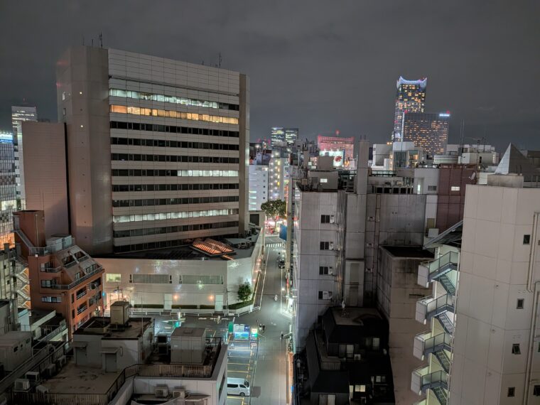 ホテルに戻ったあとは11階のテラスからの夜景を堪能。遠くには歌舞伎町タワーが輝き、ドコモタワーは色鮮やかにライトアップされています。下を見れば、飲食店の看板が灯る新宿二丁目仲通りの街並みが広がり、ここでしか味わえない「新宿二丁目」を堪能できます。