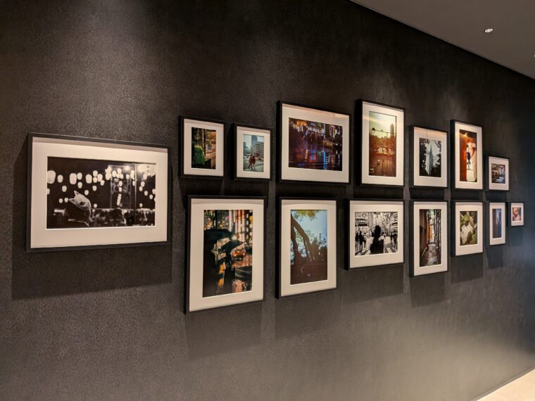 エレベーターへ向かう途中の廊下には、新宿の街や人々の瞬間を切り取った写真が並びます。新宿という街に寄り添うホテルであることを感じさせてくれます。