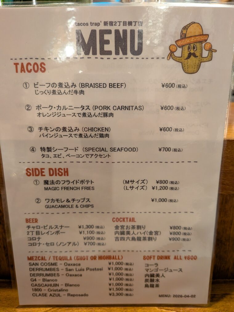 4月3日㈮、新宿弐丁目横丁に新しいお店「tacos trap’(タコストラップ)」が誕生しました!実はこのお店、新宿御苑前 本店・2号店ともに、御苑エリアでは知らない人はいない人気店。そんなお店がついに二丁目にキター!ということで、さっそくお祝いを兼ねて伺ってきましたので、ご紹介させていただきます。